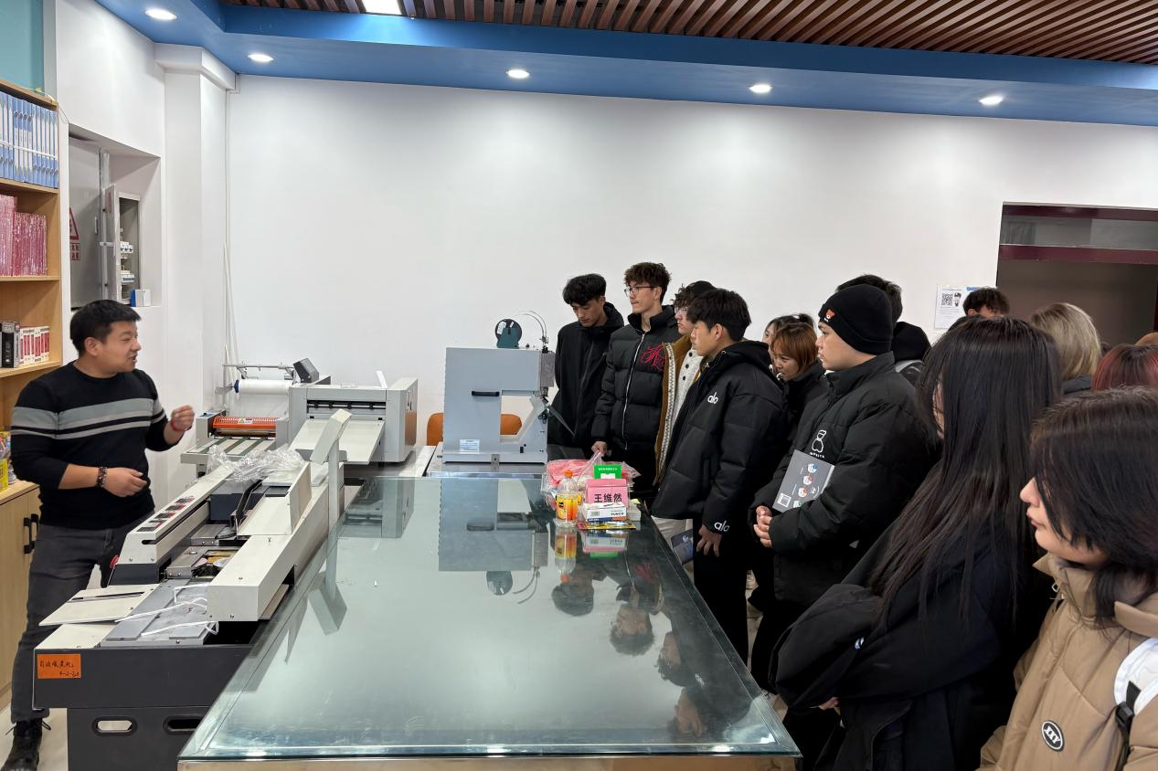 进入中心后,整洁的实训环境与先进设备迅速吸引学生目光。工作人员围绕数字广告制作全流程,详解高速激光雕刻机、数字媒体印刷系统、3D建模工作站等核心设备的功能与应用,在动态广告实训区现场演示“创意构思-素材采集-后期制作”完整流程,结合企业真实案例解读行业对设计人才的技能要求,并耐心解答学生关于设备操作、职业发展的疑问,互动氛围热烈。