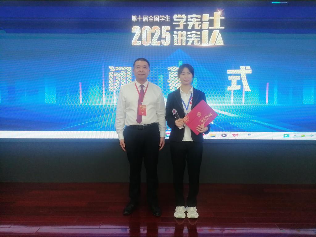 10月10日,第十届全国学生“学宪法 讲宪法”活动新疆选拔赛中,我校马克思主义学院法律事务2301班刘锦秀同学在李旭东教师指导下,荣获“法治素养竞赛”项目自治区三等奖。此次比赛活动在党委宣传部大力支持下,在马克思主义学院精心组织下,在指导教师全力辅导下,在参赛学生奋力拼搏下取得的。此次获奖充分体现学校“崇德尚能、学以致用”人才培养理念的实践成果,也充分展示出我校马克思主义学院法律专业师生过硬的专业能力素质。