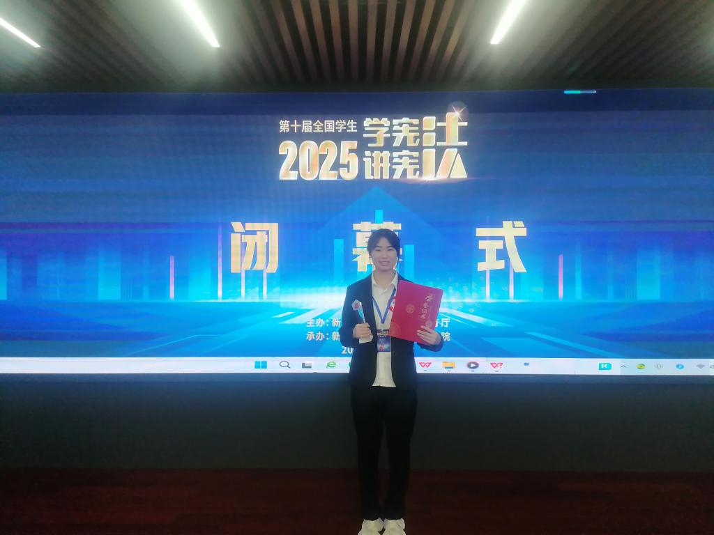 第十届全国学生“学宪法 讲宪法”活动新疆选拔赛“法治素养竞赛”项目由自治区教育厅主办,新疆警察学院承办。全疆共有28所高校参与“法治素养竞赛”初赛,从初赛中选拔出13所高校参加复赛,刘锦秀同学以总成绩排名第三进入复赛,后又以复赛第二名的成绩闯入决赛,最终取得“法治素养竞赛”项目决赛三等奖的优异成绩。