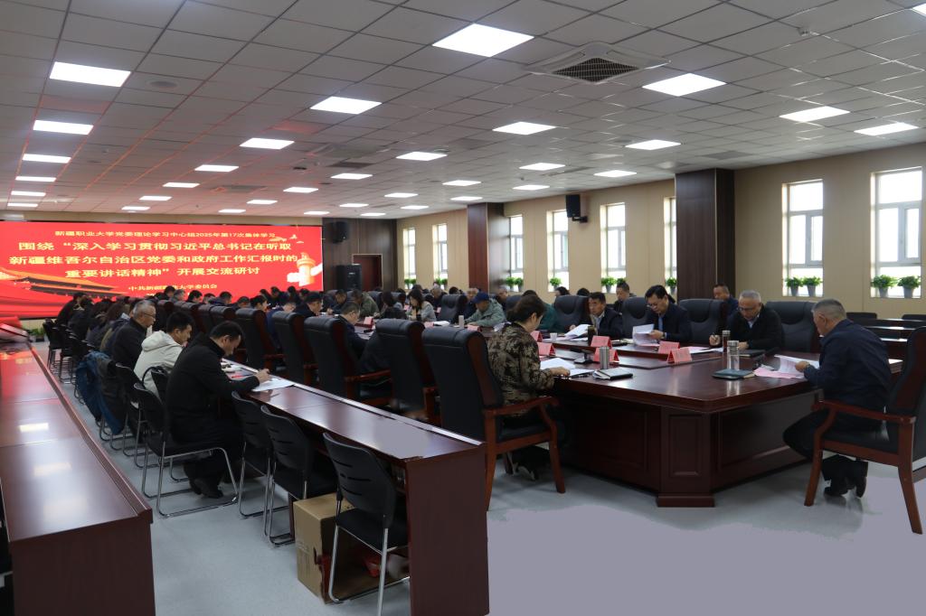 10月14日,我校党委召开2025年度第17次党委理论学习中心组集体学习会议。会议及时跟进学习习近平总书记近期重要讲话、重要回信、重要文章精神,深入学习贯彻习近平在听取新疆维吾尔自治区党委和政府工作汇报时的重要讲话精神,并开展交流研讨。校党委书记黄朝华主持会议并讲话,校党委常委、副处级以上干部参加了会议。党委班子成员周全新、处级干部王平和日孜完古丽,结合工作实际,作了现场交流研讨。