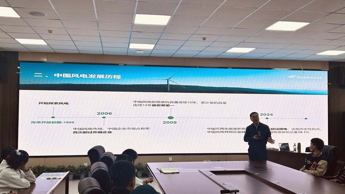 作为从母校走出、深耕风电领域多年的行业从业者,杨华副总经理还结合自身职业经历,向在场学生分享成长感悟。他鼓励同学们锚定风电、新能源专业赛道深耕细作,既要珍惜在校时光夯实理论基础,也要通过实践不断锤炼专业技能,未来以过硬本领为行业高质量发展贡献青春力量。同时,他也向母校表达深切期许,希望母校持续发挥专业办学优势,培养更多契合产业需求的高素质技术人才,为风电产业发展注入源源不断的“新疆职大力量”。