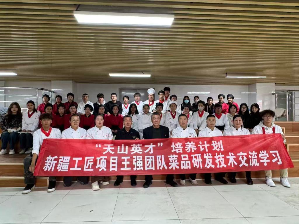 10月13日,由新疆工匠王强大师带领团队成员,特邀国宴抓饭主理人、世界一级烹饪大师肖龙付和注册中国烹饪大师高级技师刘新泉在我校烹饪与餐饮管理学院开展师生交流活动。
