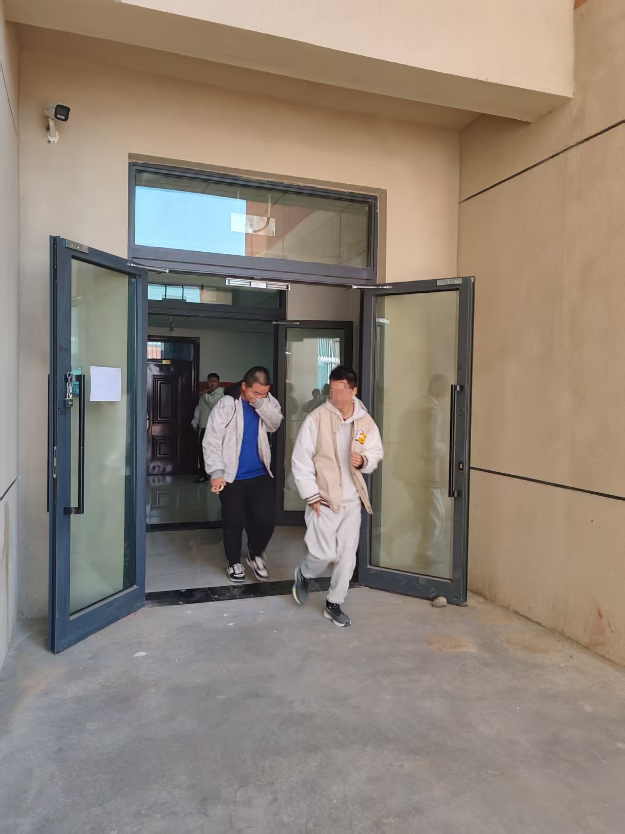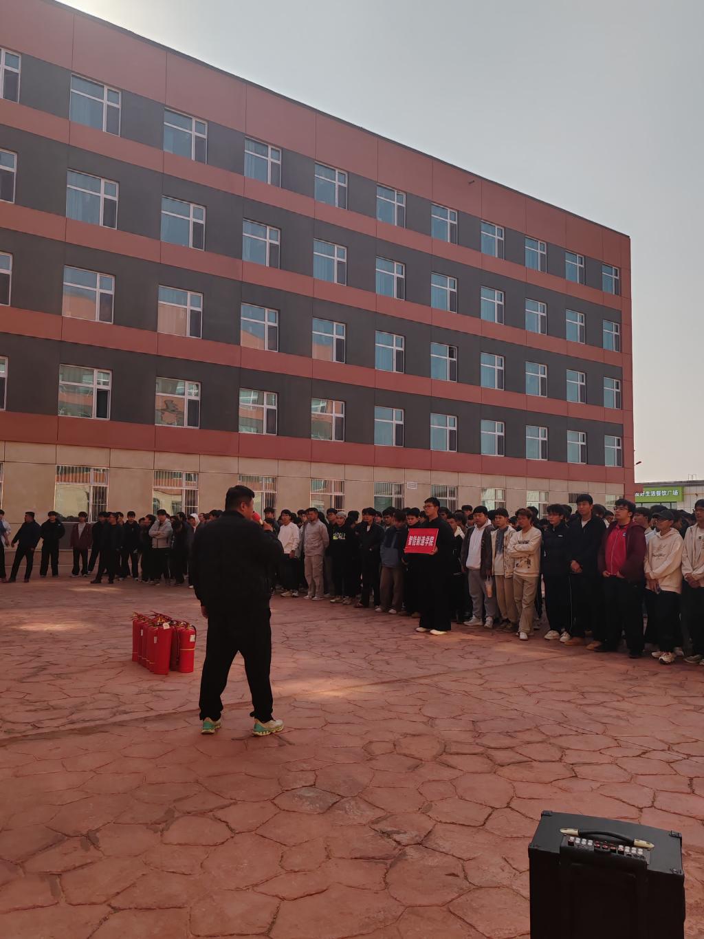 演练前,消防科于科长通过简短讲解普及逃生技巧与灭火器使用要点并演示灭火器“提、拔、握、压”使用步骤,确保师生熟练掌握核心技能 ,强调火灾隐患排查常识。14:30分宿舍楼火灾警报准时响起,应急响应系统立即启动。浓烟模拟场景,师生按指定路线弯腰捂鼻、快速有序撤离,在楼梯转角、出入口等关键节点设置引导岗各楼层引导人员组成“安全防线”,实时疏导人流,确保疏散通道畅通。