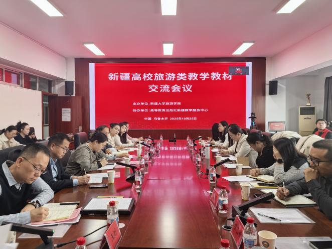 近日,由新疆大学旅游学院主办、高等教育出版社新疆教学服务中心协办的“丝路传知,旅教共进”新疆高校旅游类教学教材交流会在新疆大学红湖校区成功举办。我校旅游学院的教师代表在党总支副书记马俊同志的带领下,参加了此次交流会,与疆内高校同仁共话旅游教育发展。