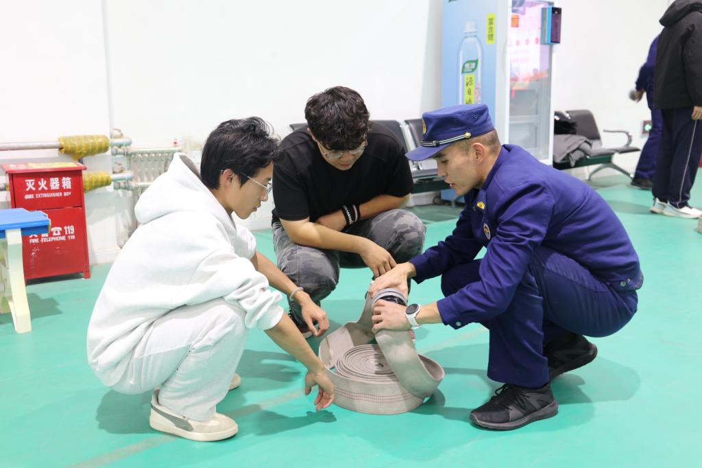 为增强培训实效,活动还设置了消防知识竞答、灭火器实操挑战、水带连接游戏等趣味环节。消防员现场演示“提、拔、握、压”四步灭火技巧,指导师生模拟处置“油锅起火”“电器短路”等常见火情。现场气氛热烈,参与师生纷纷表示在互动中掌握了实用技能,提升了自救互救能力。
