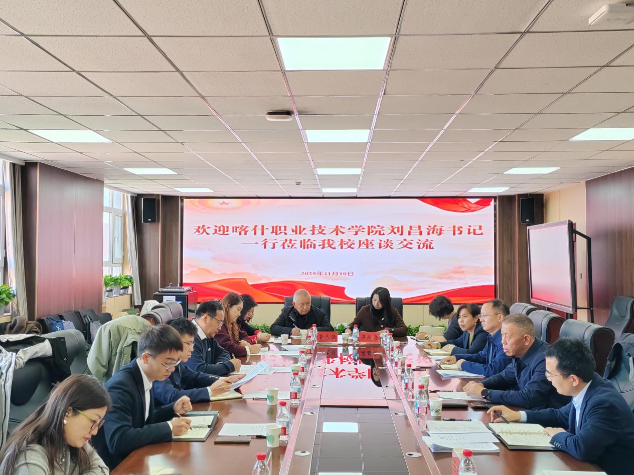 刘昌海书记从办学历史沿革、校区建设、发展规划等方面介绍了喀什职业技术学院整体情况,希望下一步双方就教育教学、后勤管理、招生就业、智慧校园等方面进一步交流合作,共同探索高效、智能、科学的校区建设管理模式。