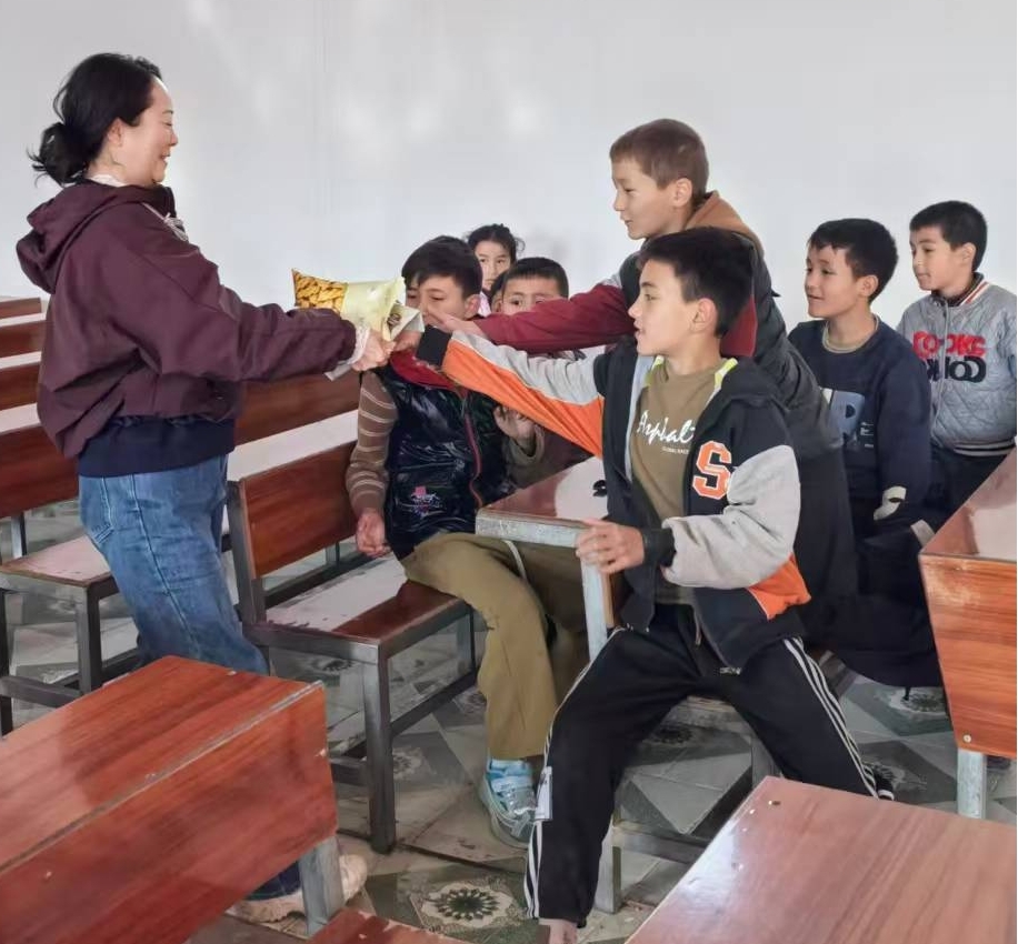 宣讲结束后,“结亲交友”环节中,结亲干部向结亲村民们赠送了大米和食用油,给小朋友们分发喜欢的零食,大家围坐一起畅谈心声,以真心换真情,筑牢团结之基。村民托合提艾力表示:“听了宣讲,真正的感受到了民族团结才能让我们的日子越来越好,要像一家人一样互帮互助,不分你我。”