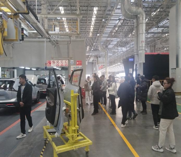 在广汽传祺新疆分公司,企业讲解员首先系统介绍了品牌发展历程:自2010年成立以来,广汽传祺凭借自主创新突破核心技术,成长为中国品牌汽车的标杆企业,连续12年上榜世界500强。同时广汽传祺在新能源、智能网联领域也在不断发展。随后,教师们走进总装车间地盘生产线,近距离观摩机械师安装底盘和车身合车,机器人安装前后挡风玻璃,感受机械智能化发展带来的便利与自动化车间的效率,从零部件精准适配到智能机器人协同作业,细致了解汽车制造的流程,对现代化生产的标准化、精细化有了直观认知。试乘试驾环节中,教师们亲身体验了传祺车型的动力性能、智能操控系统与安全配置,为课堂讲解积累了鲜活素材。