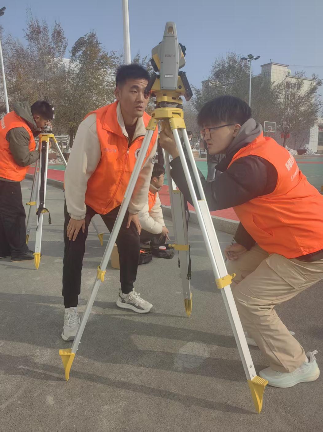 比赛现场,各环节环环相扣、考验重重。我校参赛团队分工明确、配合默契:操作员使用仪器时精准对中、整平精确到毫米级,观测员凝神读数、记录,计算员快速核算、校验,每一个动作规范娴熟,每一组数据严谨无误。面对复杂的现场环境与紧张的比赛节奏,团队始终坚守“精准至上”的原则,严格把控测量精度与准确度,用专业能力诠释了工程测量“失之毫厘,谬以千里”的职业准则。