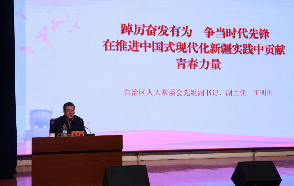 按照自治区党委关于领导干部带头讲思政课的安排部署,11月19日,自治区人大常委会党组副书记、副主任王明山走进我校,围绕深入学习领会习近平新时代中国特色社会主义思想和党的二十届四中全会精神,深入学习贯彻习近平法治思想,学习贯彻自治区党委十届十五次全会精神,推进中国式现代化的新疆实践主题,为各族师生讲授思政课。