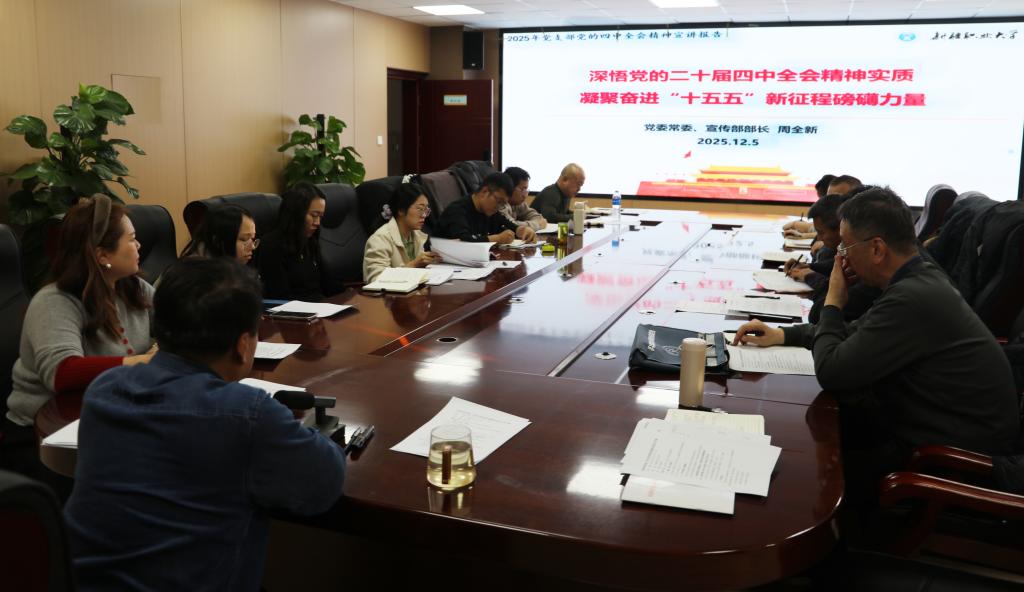 为深入学习贯彻党的二十届四中全会精神,持续推进全面从严治党向纵深发展,12月5日下午,我校宣传部党支部与保卫处党支部在行政楼319会议室联合开展主题党日活动。活动由校党委常委、宣传部部长周全新同志主持,两支部全体教职工参加。