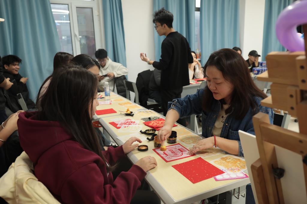 非遗拓印区,师生们亲手操作传统工具,在红宣纸上拓印出寓意吉祥的福字、纹样,感受非遗文化的独特魅力;新年灯谜区,各民族学生围坐讨论、互帮互助,在破解灯谜的过程中交流知识、拉近距离;手绘新年签环节,大家用笔写下对新年的美好期许与对民族团结的真挚祝福,字里行间满是温暖;新年盲盒挑战则让师生在协作拆盒、完成任务的过程中增进默契,现场氛围热烈而温馨。校领导与教师们全程参与各项活动,与学生们并肩互动、亲切交流,时而共同探讨灯谜答案,时而携手完成拓印作品,欢声笑语中尽显“师生同心、民族同源”的深厚情谊。