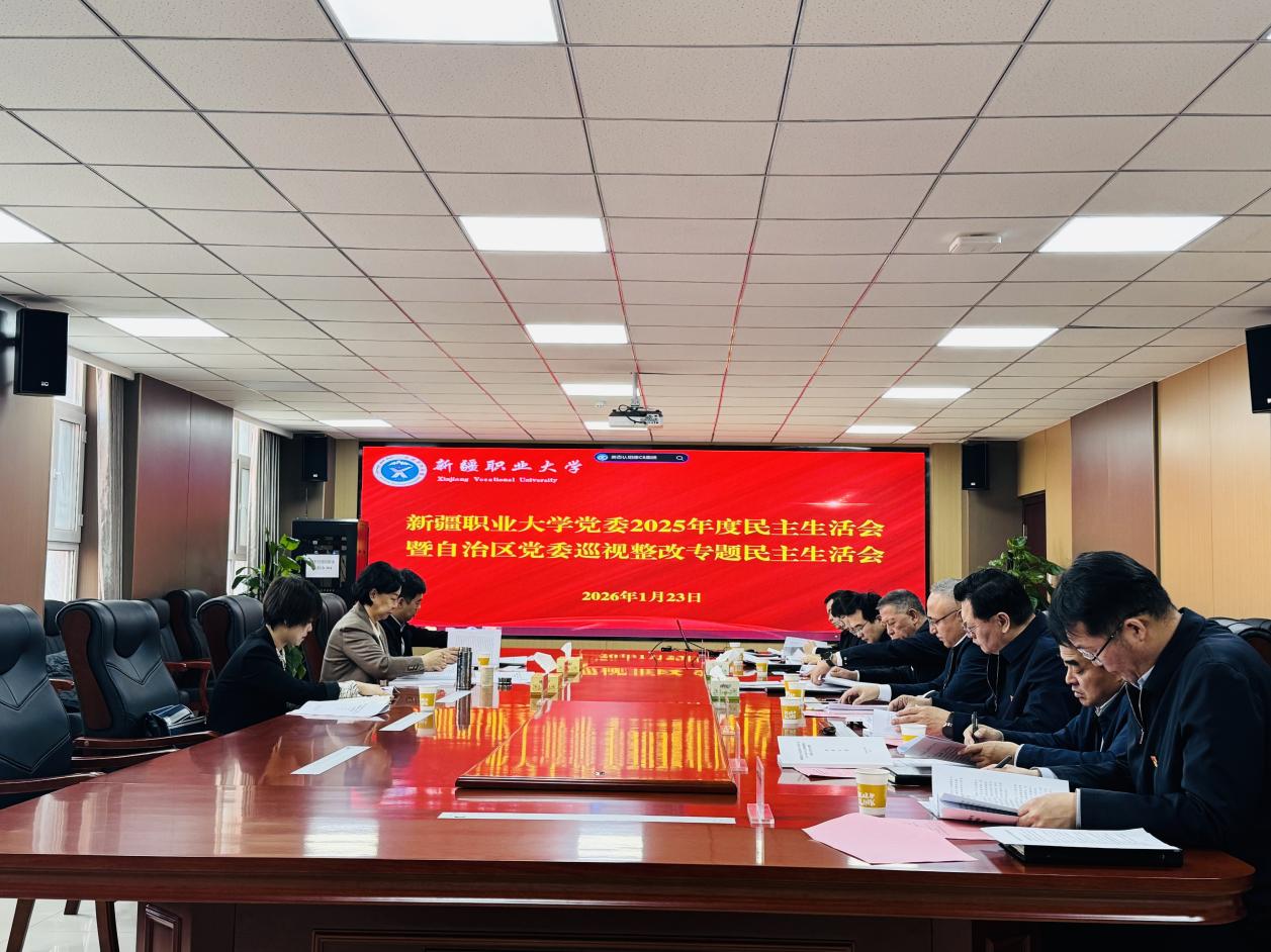 1月23日,我校党委领导班子召开2025年度民主生活会暨自治区党委巡视整改专题民主生活会,紧扣“深入学习贯彻习近平新时代中国特色社会主义思想,全面贯彻落实党的二十届四中全会精神,以打攻坚战、持久战的决心和恒心,锲而不舍落实中央八项规定精神,推进作风建设常态化长效化,以优良作风凝心聚力、真抓实干,奋力开创中国式现代化建设新局面”主题,紧密结合实际,全面检视查摆问题,深入进行自我检视和党性分析,严肃认真开展批评和自我批评。