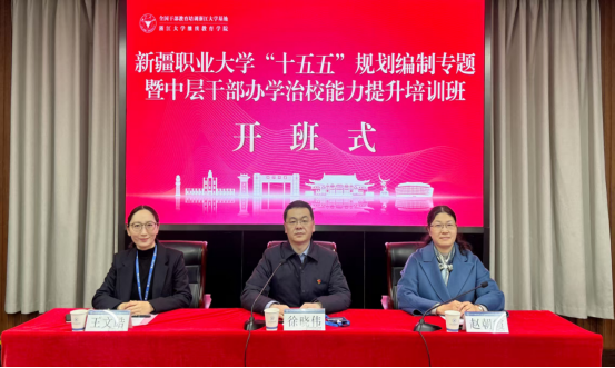为科学擘画学校“十五五”发展宏伟蓝图,全面提升中层干部办学治校综合能力,锻造高素质专业化管理队伍,近日,我校“十五五”规划编制专题暨中层干部办学治校能力提升培训班在浙江大学华家池校区民主馆正式开班,为学校高质量发展蓄能赋能,推动学校在扎根新疆、服务区域发展大局中展现新作为、实现新突破。校党委常委,组织部部长、人事处处长徐晓伟,浙江大学继续教育学院党委委员、副院长赵朝霞等出席开班仪式,学校全体参训中层干部参加仪式。