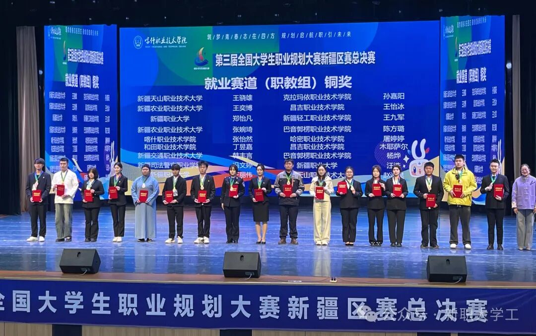3月19日,第三届全国大学生职业规划大赛新疆区赛总决赛在喀什职业技术学院圆满落幕。我校选派的4名参赛学生沉着应战、不负众望,斩获职教组成长赛道金奖1项、就业赛道铜奖3项,再创我校职规教育与人才培养新高度。