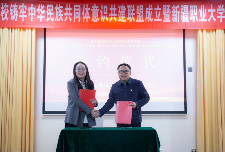 3月25日,自治区民办院校铸牢中华民族共同体意识共建联盟成立暨新疆职业大学战略合作签约仪式在新疆能源职业技术学院举行。我校马克思主义学院、自治区各民办院校、超星集团等校企合作单位齐聚一堂,共同见证联盟成立,共商新疆民办院校思政教育高质量发展路径,携手探索铸牢中华民族共同体意识教育新实践。