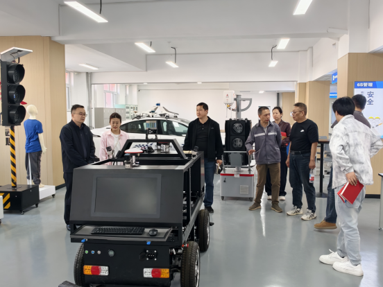 考察团实地参观了智慧交通学院教学场地、实训基地及广慧金通产业学院,详细了解我校产业学院运行模式与建设成效。