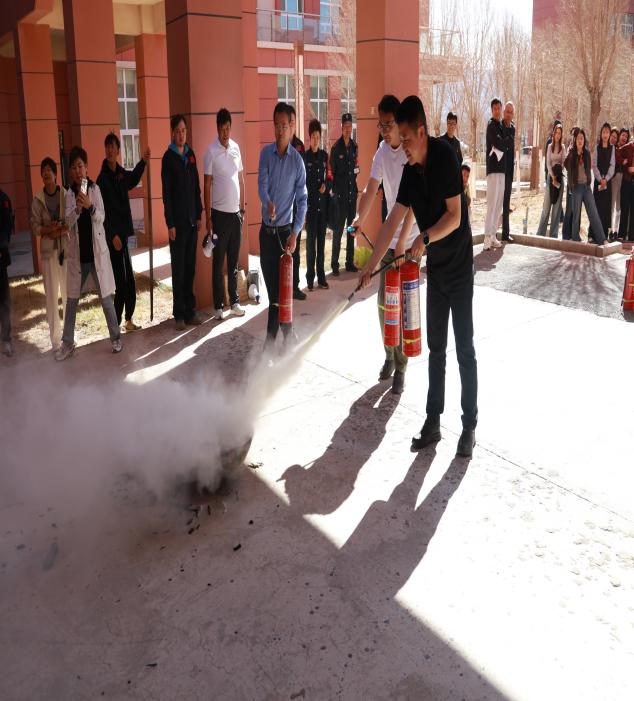 随后,现场开展消防器材实操培训。工作人员详细演示干粉灭火器、消防水带使用方法,重点讲解灭火器“提、拔、握、压”操作步骤,宣传初期火灾扑救技巧。教职工们逐一上手实操,亲自体验灭火流程,熟练掌握消防器材使用技能。