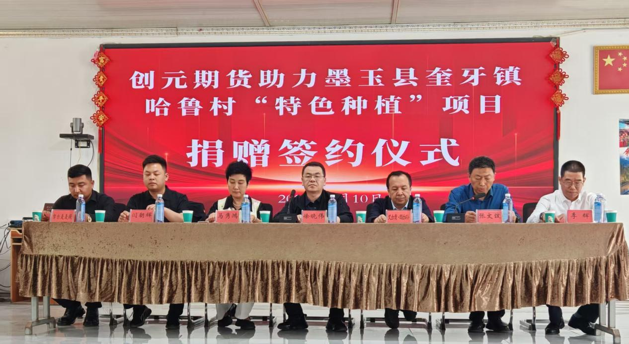 近日,创元期货股份有限公司助力墨玉县奎牙镇哈鲁村“特色种植”项目捐赠仪式在哈鲁村村委会举行。校党委常委、组织部部长、人事处处长徐晓伟,墨玉县委常委、副县长艾尔肯·图尔孙,校驻村工作队总领队张文弢,创元期货股份有限公司乡村振兴领导小组副组长、战略合作部部长马隽鸿,墨玉县奎牙镇党委书记闫朝辉等参加捐赠仪式,哈鲁村“两委”班子、驻村工作队员与村民代表齐聚一堂,共同见证这一助力乡村产业振兴的爱心善举。