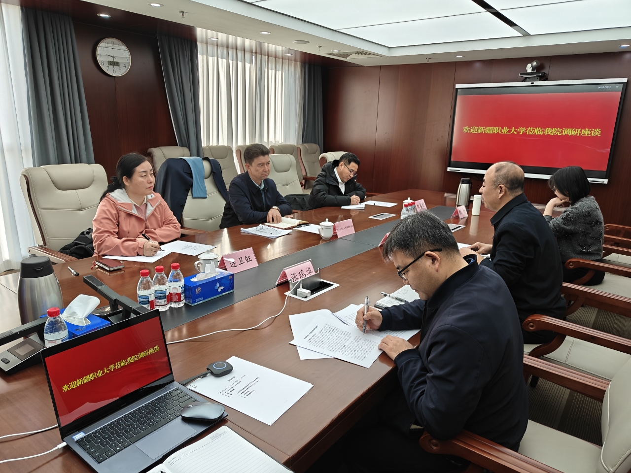 座谈会上,阿不力克木·阿不德卡德尔校长介绍了自治区党委、政府以及自治区教育厅对我校发展的高度重视,介绍了学校的发展历程和办学特色,在服务区域安全发展、培养高素质技术技能人才方面取得的成效以及与内地高校、企业交流合作的经验。他表示,学校积极响应国家“大安全大应急”战略部署,大力推进相关专业建设与社会服务能力提升,希望以此次调研座谈为契机,深化与应急管理部干部培训学院合作,互利共赢、共同进步,更好服务西部地区应急管理体系和能力现代化建设。