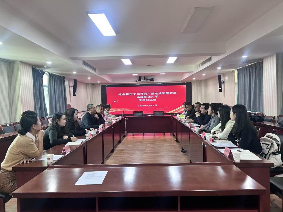 为深化校地合作,推动旅游学科实践教学与地方文旅产业发展深度融合,12月6日,我校党委常委副校长李亮、旅游学院党总支副书记兼副院长谢辉、党总支副书记马俊、副院长王海燕及相关专业教师代表一行9人,前往吐鲁番市文化体育广播电视和旅游局开展合作交流座谈暨合作签约仪式。吐鲁番市文旅局党组书记、副局长朱建江及相关科室负责人出席座谈,双方围绕民宿建设提质、研学旅行开发等核心议题深入交流,最终达成多项合作共识。