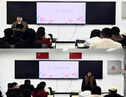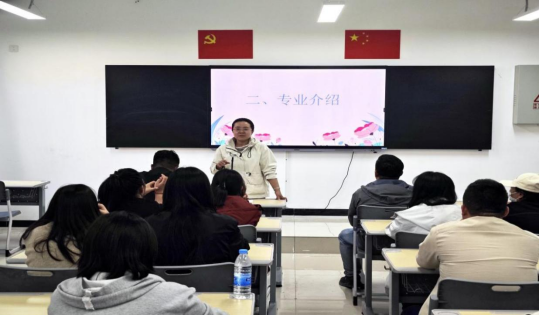 教研室专任教师依次讲解各专业的课程设置、学科特色与发展前景。副院长高洋重点介绍了校企融合的现状与发展,结合学生成长成才的需要,做了职业规划的展望。