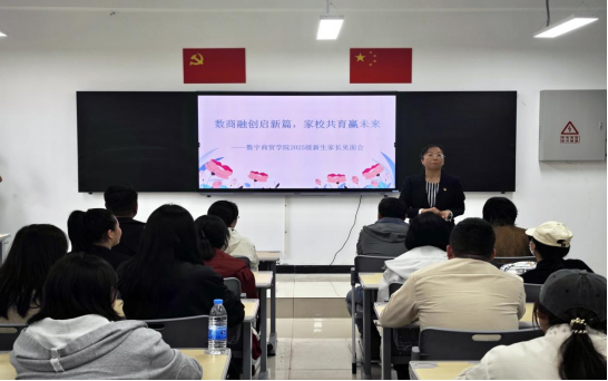 为搭建学校与家长间的有效沟通桥梁,展示办学理念、育人成果与校园文化,凝聚家校育人合力,助力新生快速适应校园环境,数字商贸学院于9月13日在1号崇文楼111教室组织开展主题为“数商融创启新篇,家校共育赢未来”2025级新生家长见面会。