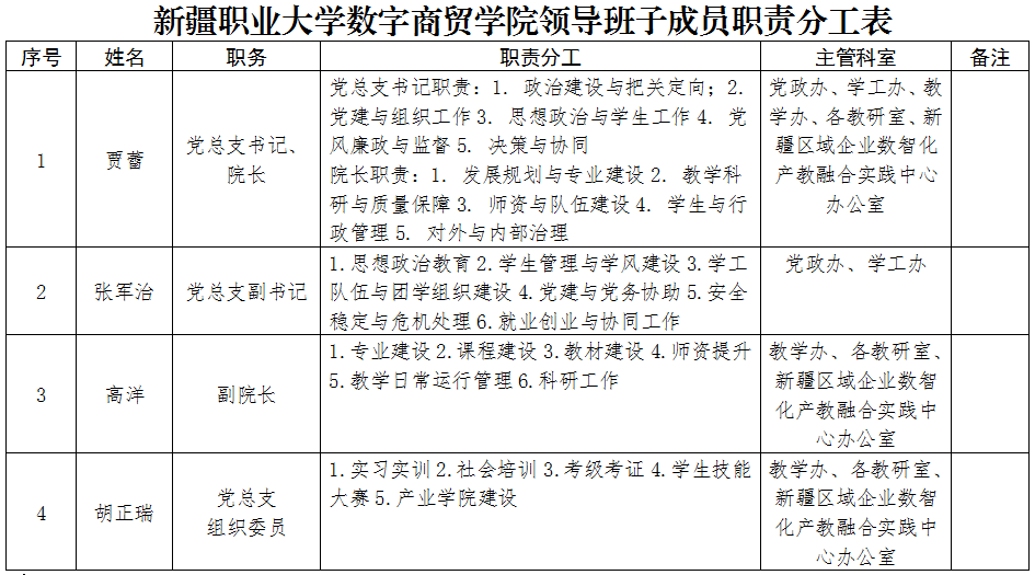 新疆职业大学数字商贸学院领导班子成员职责分工表