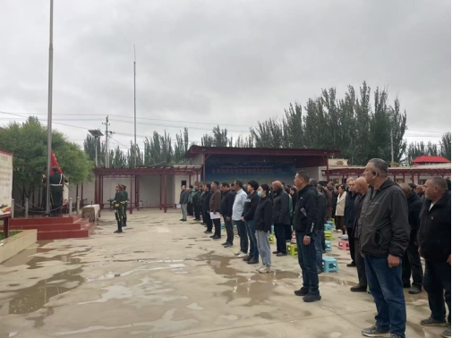 4月21日清晨,阳光洒在村庄的土地上。结亲干部与亲戚们一同参加了周一升国旗仪式。大家整齐地站在国旗杆下,身姿挺拔,目光坚定地仰望鲜艳的五星红旗。随着激昂的国歌奏响,所有人齐声高唱,五星红旗在风中冉冉升起。这一刻,豪迈之情在每个人心中油然而生,进一步坚定了村民群众感党恩、听党话、跟党走,追求美好生活的信心。同时,也让“访惠聚”工作队和结亲干部更加明确了使命与担当,坚定了紧紧围绕总目标,全力以赴抓好各项工作的决心。